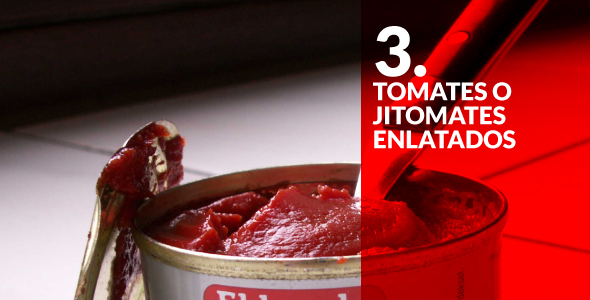 Muchas marcas líderes de alimentos enlatados contienen BPA – un químico tóxico vinculado con anormalidades reproductivas, efectos neurológicos, aumento del riesgo de cáncer de mama y de próstata, diabetes, enfermedades del corazón y otros problemas serios de salud. Según las pruebas del Cosumer Reports sólo un par de porciones de comida enlatada puede exceder los límites seguros de exposición diaria en los niños. La alta acidez – una característica prominente de los tomates – hace que el BPA se filtre en los alimentos. Para evitar esta sustancia química peligrosa, evite los alimentos enlatados por completo y consuma frutas y vegetales frescos, o en su lugar, compre marcas que utilicen envases de vidrio -especialmente con alimentos ácidos como el tomate.