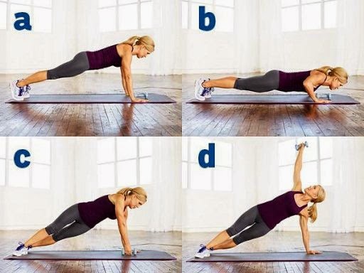 8.- Plancha o tabla (plank) frontal (ponte en posición de flexión pero con apoyo sobre el antebrazo, y mantén la posición por 30 segundos).